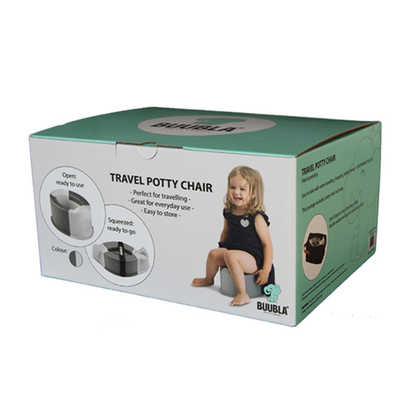 Spremi la sedia vasino Buubla e inseriscila nella borsa con o senza cinturino in velcro (viene fornita con la sedia vasino). Porta con te ovunque tu vada – trasporto aereo, shopping, visite ad amici o ristoranti.