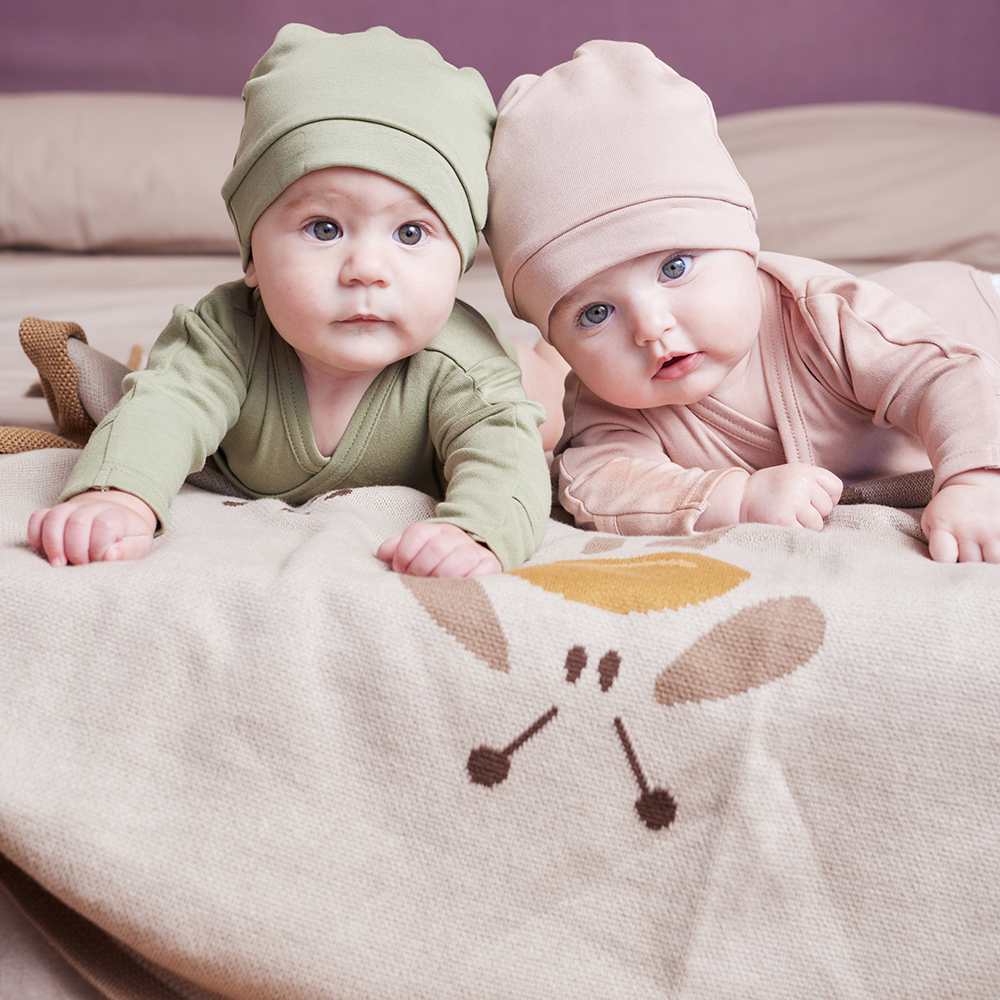 La coperta è realizzata in cotone biologico di altissima qualità ed è quindi adatta ai neonati sin dal primo giorno di vita.