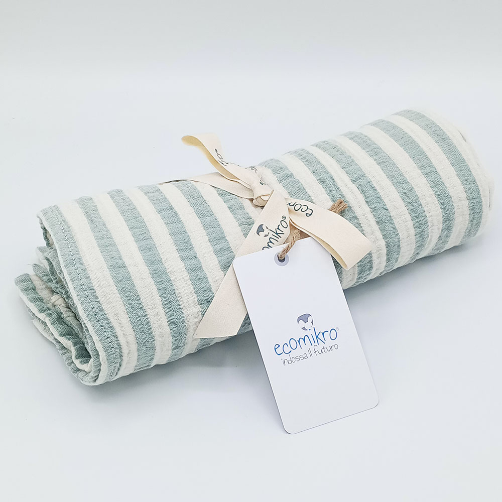 La mussola ha una dimensione 90×100 cmed è realizzata in 100% cotone organico tessuto super traspirante e delicatissimo