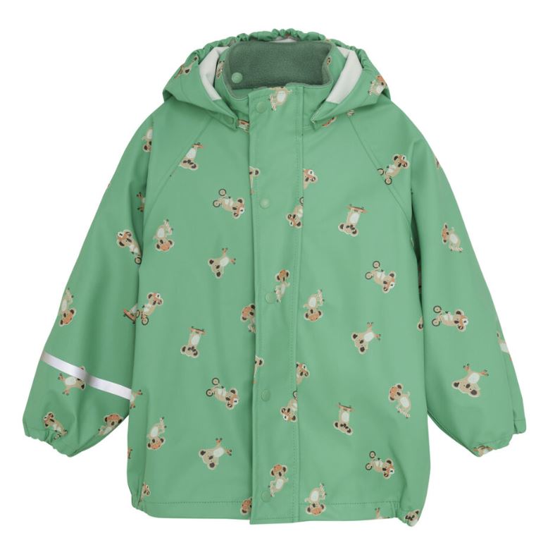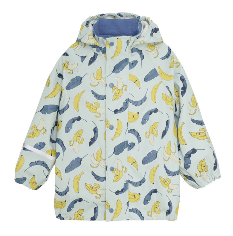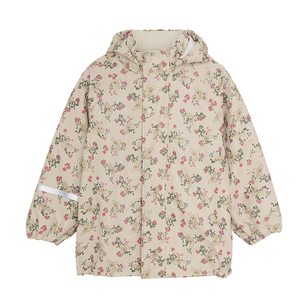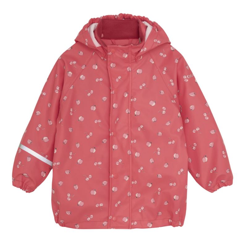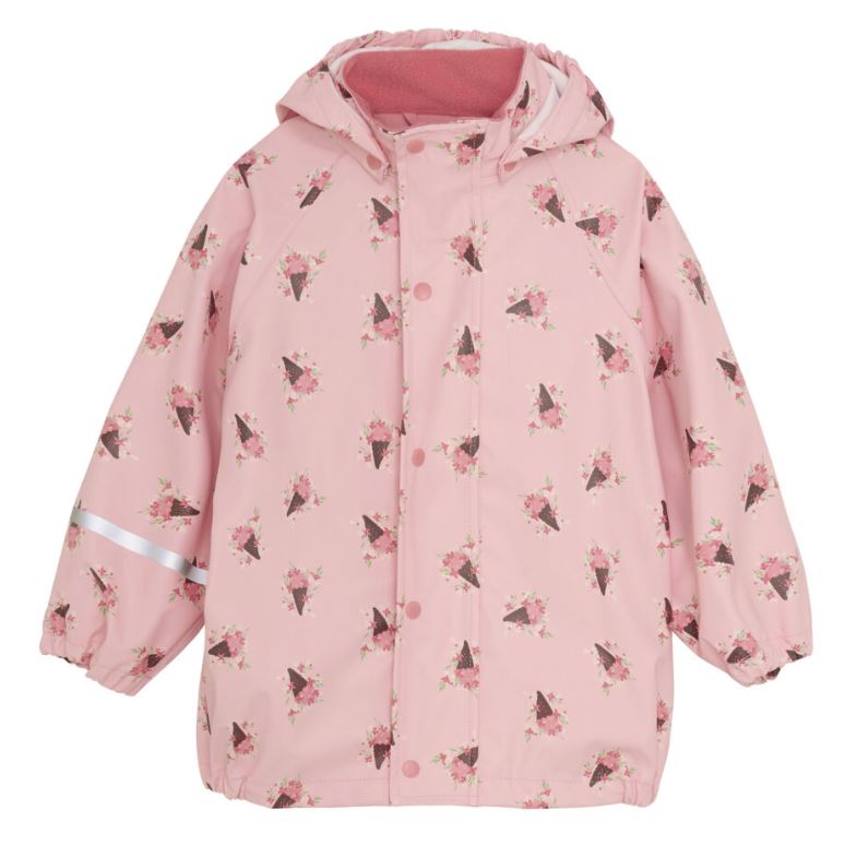 Giacca antipioggia CeLaVi elegante e funzionale, realizzata in resistente materiale PU con stampa all-over. Progettata per offrire comfort e protezione nelle giornate piovose, è dotata di dettagli riflettenti su manica, spalla e cappuccio per una maggiore visibilità. Il cappuccio è removibile grazie a pratici bottoni a pressione, mentre elastici su cappuccio, maniche e vita garantiscono una vestibilità aderente e comoda.