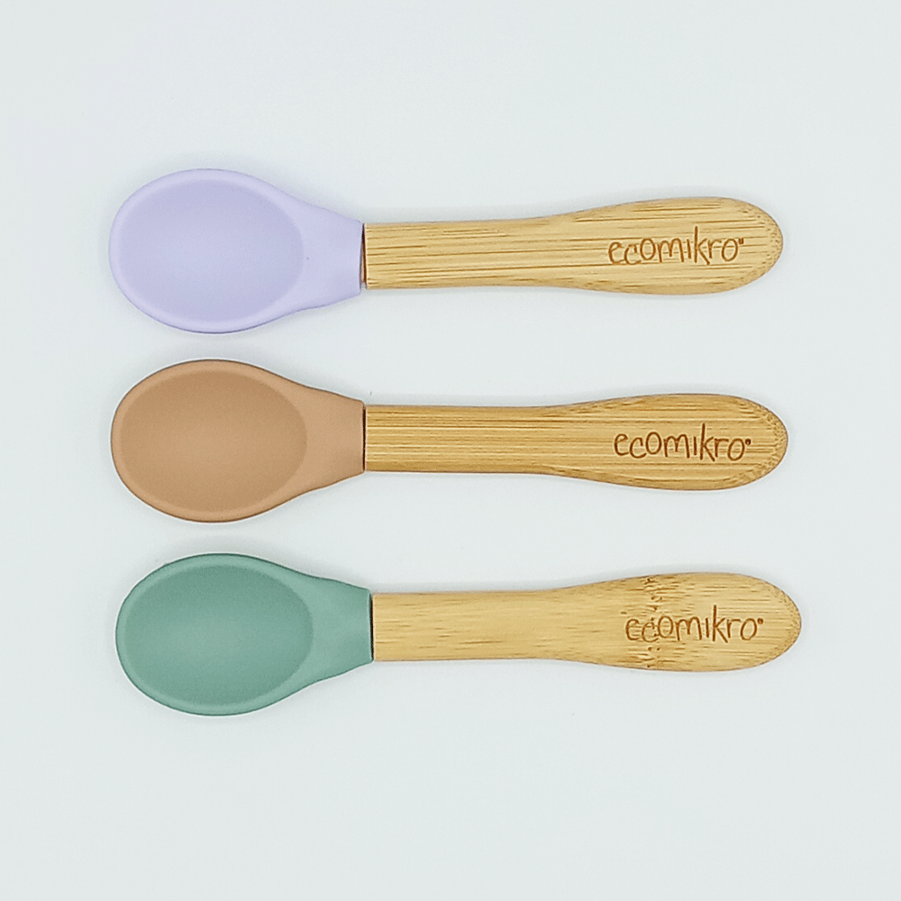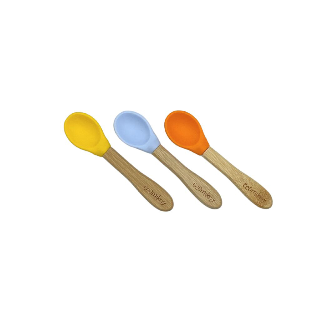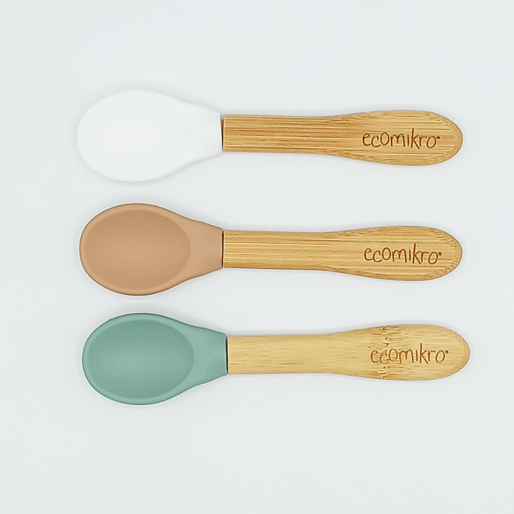 Il set da 3 cucchiai in bambù e silicone sono leggeri e progettati ergonomicamente per essere un ottimo primo cucchiaio da usare per i bambini.