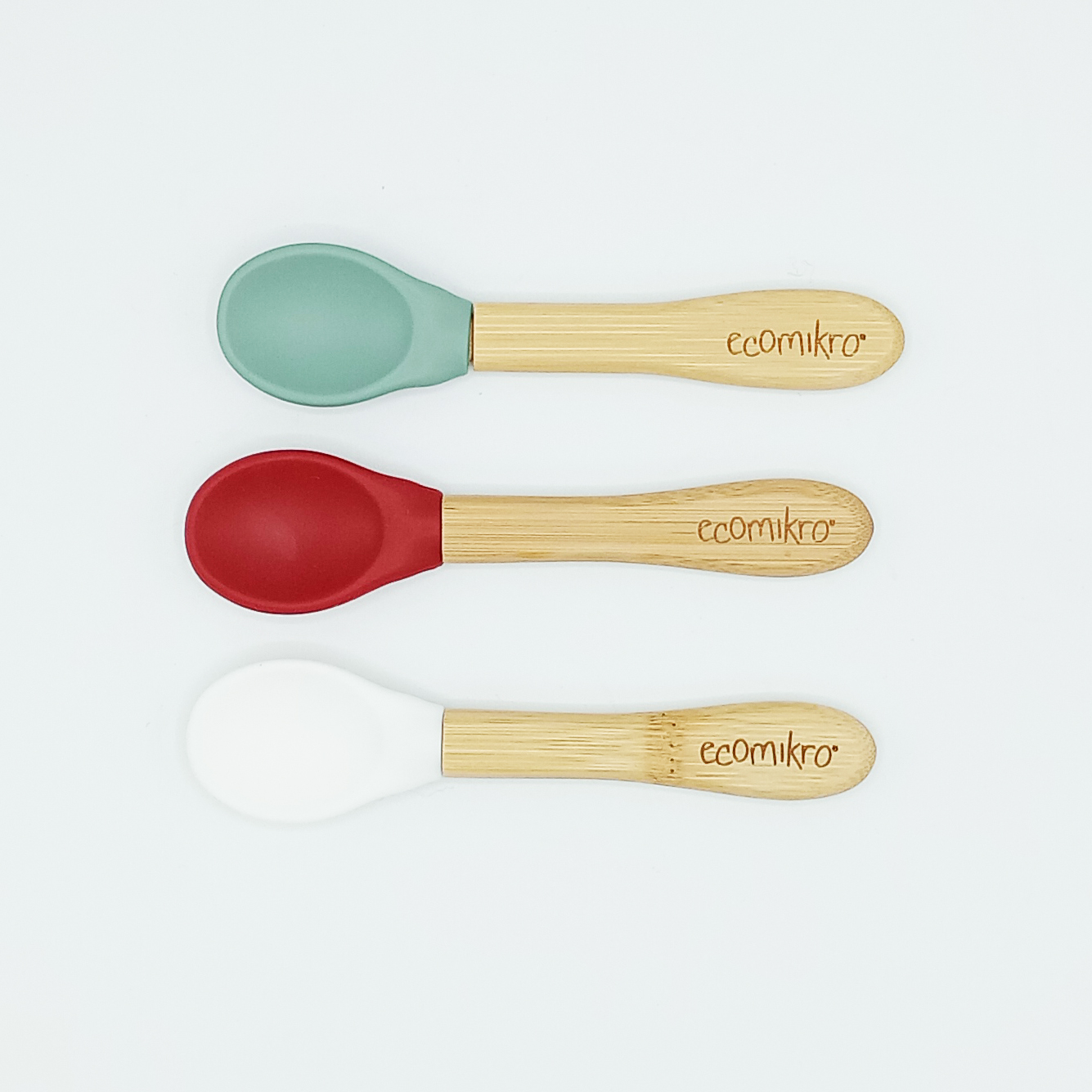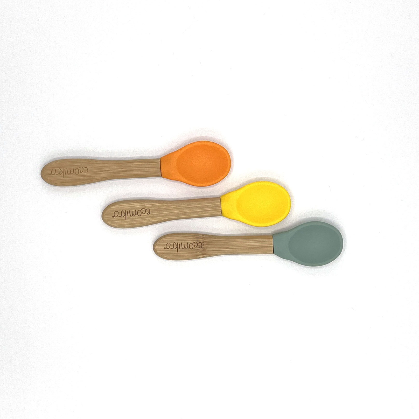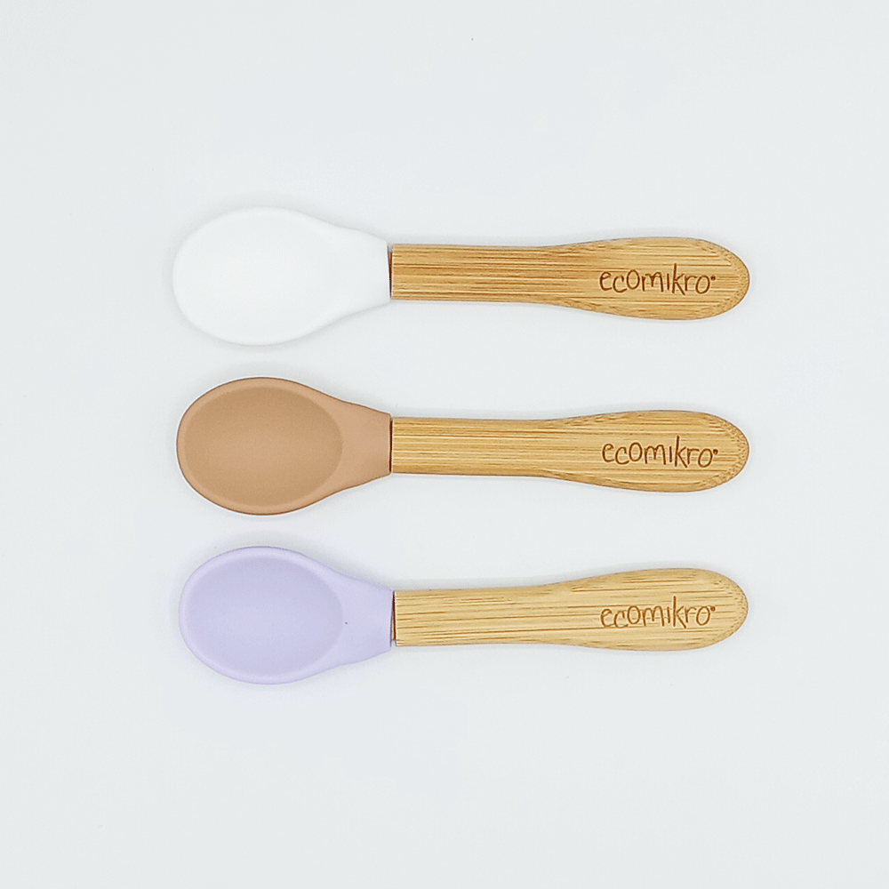 Il set da 3 cucchiai in bambù e silicone sono leggeri e progettati ergonomicamente per essere un ottimo primo cucchiaio da usare per i bambini.