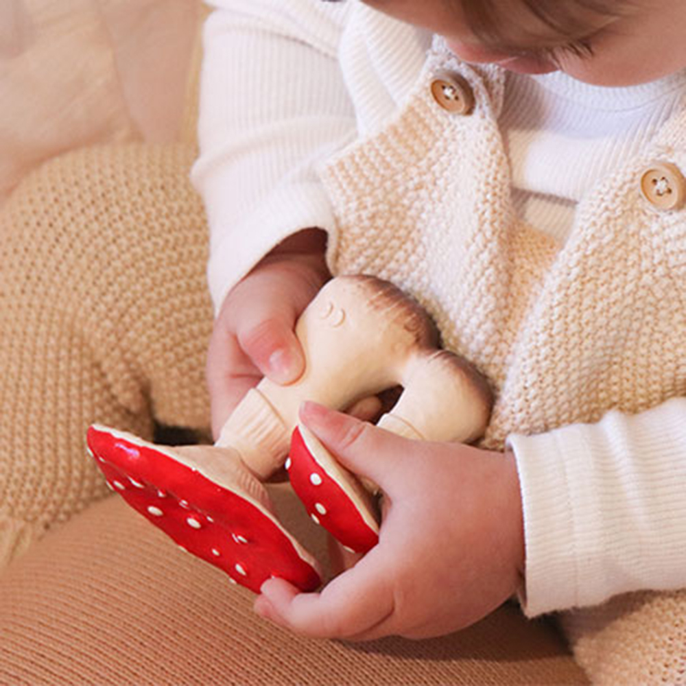 Questo massaggiagengive a forma di fungo stimolerà i sensi dei bambini mentre lenisce le piccole gengive.