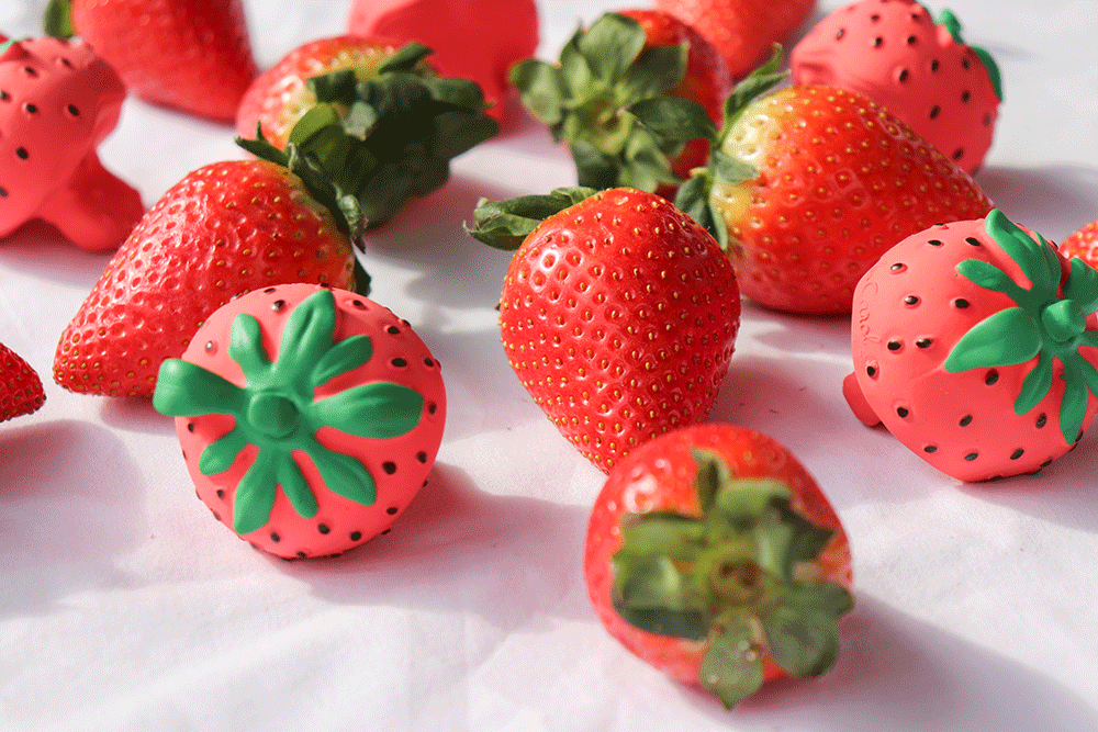 Il suo design altamente realistico e la forma ergonomica ispirata a una fragola morsicata lo rendono facile da impugnare e da masticare.