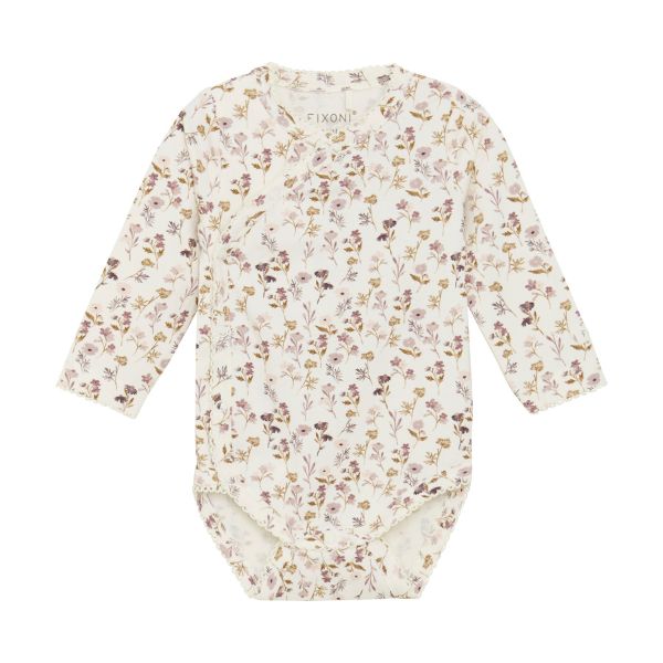 Morbido e avvolgente, questo body a maniche lunghe FIXONI con stampa all-over è pensato per garantire comfort e praticità al tuo bambino.